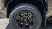 Llantas Toyo Open Country A/T de 33” montadas en rines de aleación matte-black de 18”, listas para barro, roca y arena.
